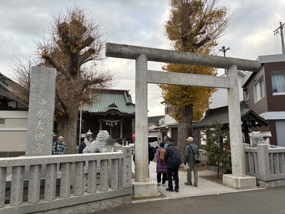 次に、源頼朝の側室が頼朝の子を身ごもった時に妻・北条政子に知られ大庭景能が局を匿って無事出産したのちここにえな(胎盤)を埋めたと言われている「えな塚」を経由して最後に「神明大神宮」まで歩きました。
